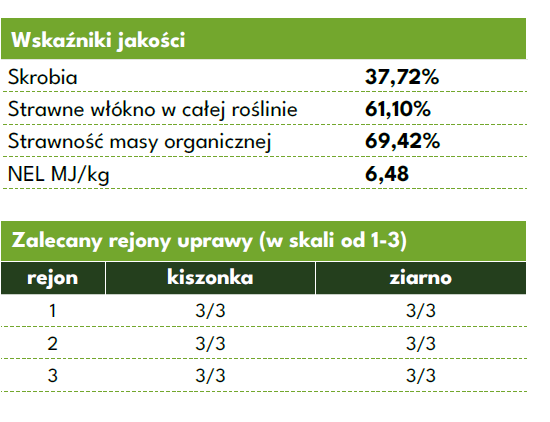 - bardzo wczesny mieszaniec do uprawy na ziarno i kiszonkę