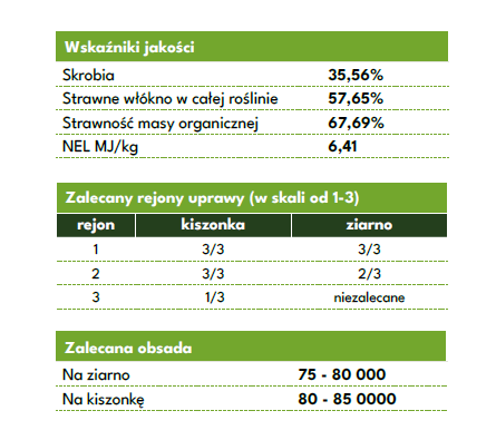 Przeznaczenie: Ziarno/Kiszonka/Bioetanol