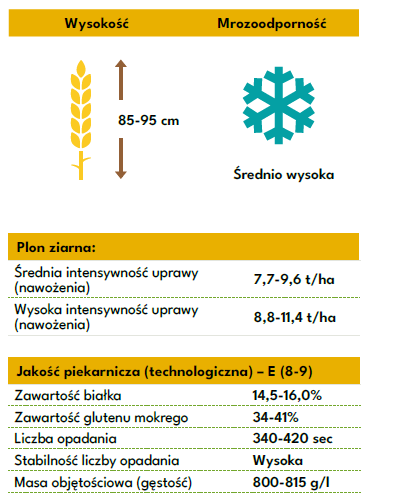 - odmiana jest przeznaczona do produkcji pszenicy z najwyższą technologiczną jakością piekarniczą